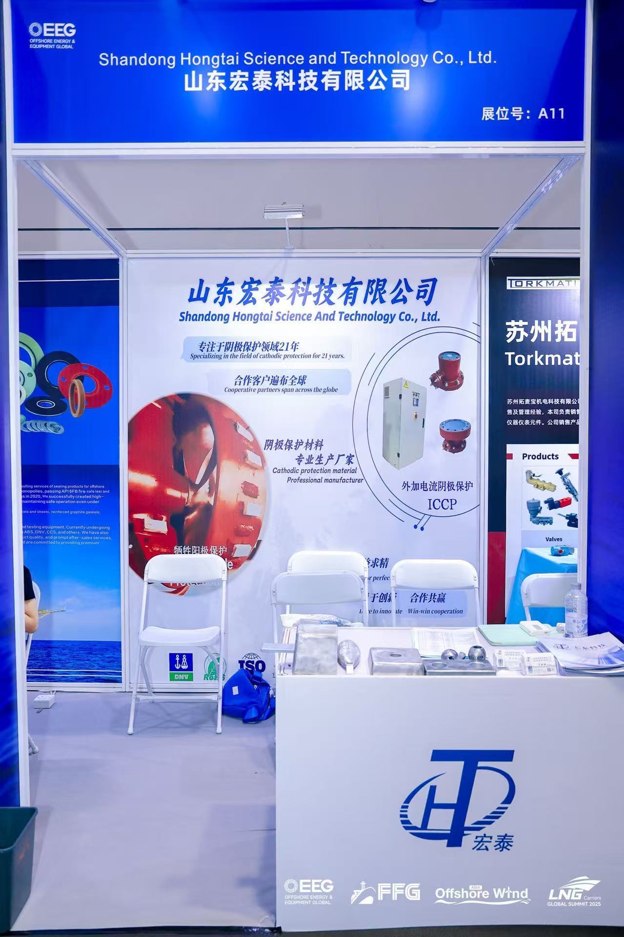 本次展会上,山东宏泰科技展示了作为阴极保护材料专业生产厂家21年来的深厚技术积累。重点陈列了阴极保护产品、外加电流阴极保护(ICCP)系统及其他核心产品与解决方案。公司代表在现场与来自全球的客户及合作伙伴(如TORKMAT等)进行了深入交流,详细讲解了阴极保护技术在LNG运输船、海上风电(Offshore Wind)等严苛海洋环境中的关键应用与技术创新。